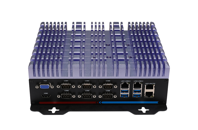●接口豐富 6*USB3.0,32* GPIO(16*GPI,16*GPO),1*遠程開關(guān),1*VGA,1*HDMI,支持雙屏同步異步顯示,標配4*Intel LAN,6*COM(標配6*RS232,COM1-2可選RS232/422/485),支持1*M.2(2242/2260/2280,SATA SDD),1*2.5寸硬盤位,2*MINI PCIE(支持WiFi或擴展卡),1*SIM槽,2*M.2(支持1*M.2 2242 Sata SSD 和1* 5G/3052或 4G/3042模塊),6*天線孔