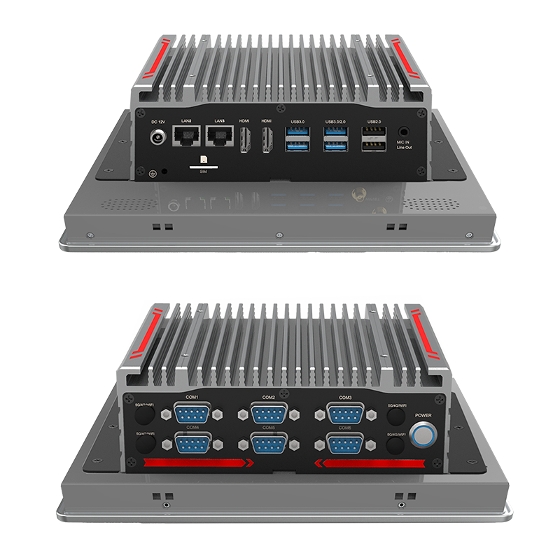 接口豐富: 2*HDMI,2*LAN(Intel I225),6*COM,3*USB3.0,3*USB2.0,1*SIM槽,1*2.5寸硬盤位,1*音頻Line-Out+MIC二合一(OMTP國家標準),1*M.2(Key-M,2280,PCIE x2 NVME SDD),1*M.2(Key-B,3052,USB3.0+USB2.0支持4G、5G模塊),1*MPCIE(全高,PCIE+USB2.0,支持WIFI+BT/網卡),2*天線孔(WiFi與4G二選一)