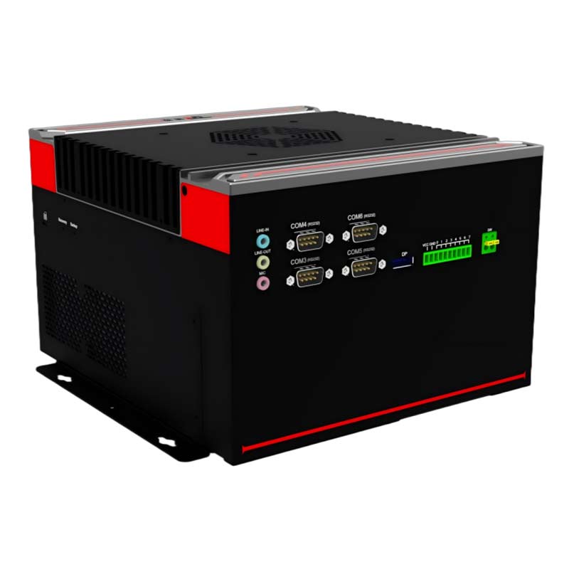 高性能 : 支持65W及以下6/7/8/9 代LGA1151 Intel Core i7/i5/i3 系列處理器穩(wěn)定可靠 : 純工業(yè)設(shè)計(jì),強(qiáng)勁解熱熱管與純銅一體化的優(yōu)良散熱結(jié)構(gòu),全密封鋁合金箱體,大面積鋁鰭散熱,可實(shí)現(xiàn)橫向與豎向等多種放置的自然對流散熱,機(jī)箱可抗接觸式6KV強(qiáng)電磁干擾,DC12V-24V寬壓輸入接口豐富 : 4*LAN(Intel),6*COM,支持T-MOD模塊擴(kuò)展,8*GPIO(4*USB2.0/2*RJ45/2*CAN/12DI+12DO三選一擴(kuò)展),4*USB3.0+4*USB2.0,1*VGA,1*HDMI,1*DP、1*遠(yuǎn)程開關(guān),1*一鍵還原,1*一鍵備份,1*SIM槽,1*LINE IN,1*LINE OUT,1*MIC,1*2.5寸硬盤位,1*M.2(KEY-M,2280,PCIEx4 支持SATA) , 1*M.2( KEY-B,3042/3052, PCIE+USB3.0支 持 4G/5G) , 1*MINI PCIE( 全 高 ,PCIE+USB2.0信號(hào)),1*PCIEx16,1*PCIEx4,6*天線孔外觀設(shè)計(jì) : 鋁合金一體成型,結(jié)構(gòu)緊湊,MiNi小巧,工藝精細(xì),科技時(shí)尚